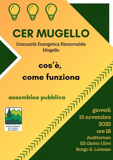 Un primo incontro pubblico per presentare e illustrare la Cer Mugello è fissato a Borgo S. Lorenzo giovedì 13 novembre alle ore 18 presso l’auditorium dell’Istituto superiore Giotto Ulivi.